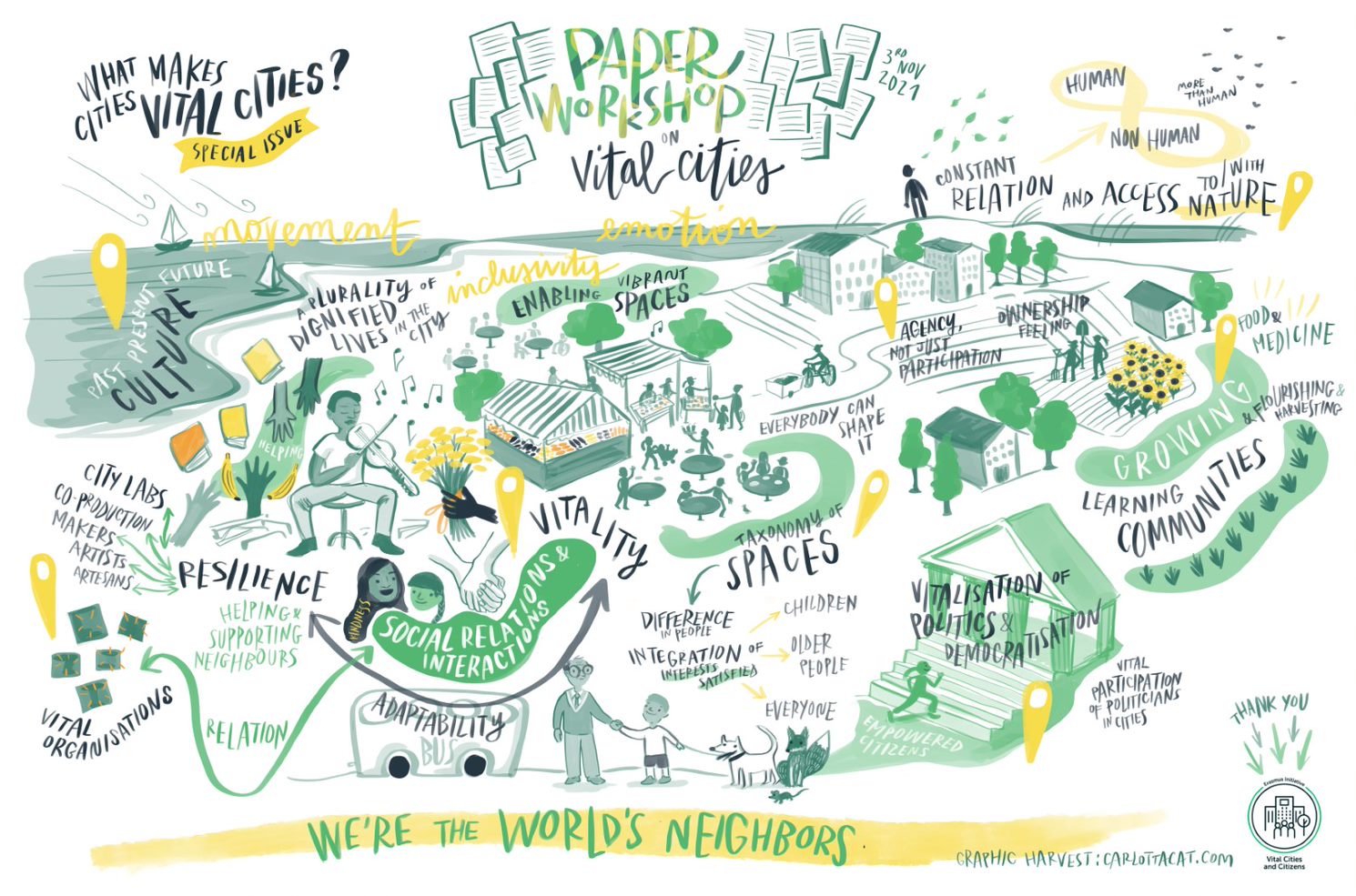 The paper workshop provided much inspiration, depth and concrete next steps. An interesting and shared observation was that vitality could be understood as "energy in the city". That can be both positive (activism, support) and negative (violence, aggression). This energy might be used for the empowerment/active participation of residents, especially those in a vulnerable, weakened position. Even violence or aggression can point to the fact that something is wrong that needs to be addressed. If this negative energy can be turned around, vitality can grow because people might be empowered to overcome shocks or unfavorable dynamics.